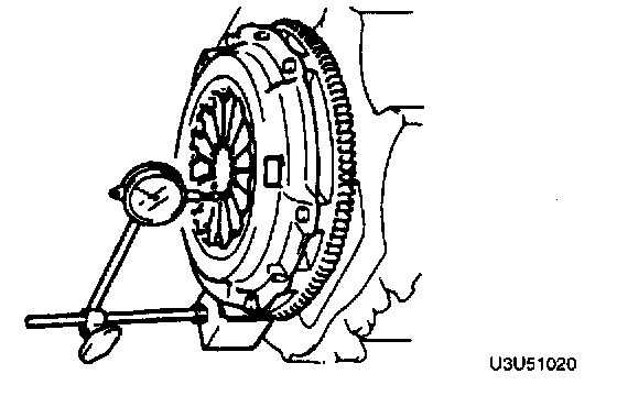 5. Measure the clutch disc runout by using a dial indicator. Replace the clutch disc if runout is excessive.