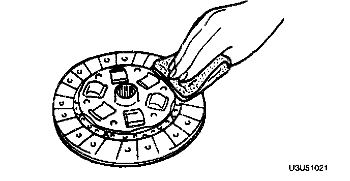 1. Inspect the contact surface of the clutch disc for scoring, cracks, burning, and oil contamination.