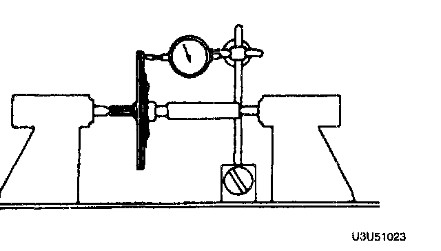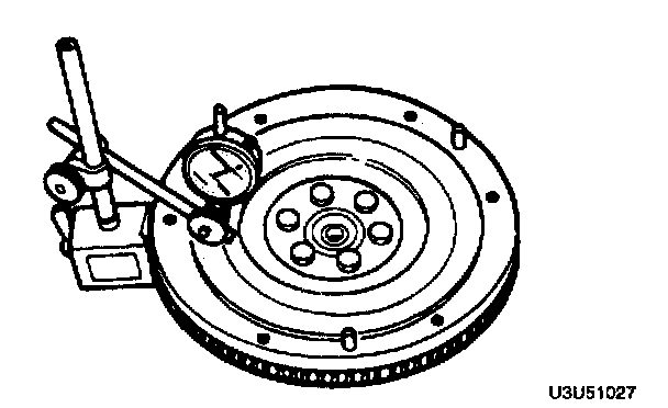 5. Measure the flywheel runout by using a dial indicator. Replace the flywheel if runout is excessive.