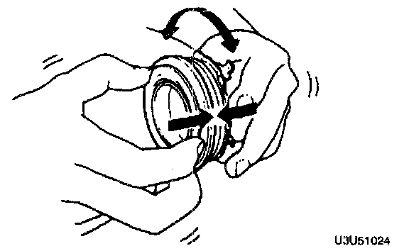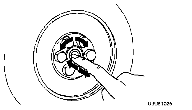 1. Without removing the pilot bearing from the flywheel, turn the bearing while applying force in the axial direction.