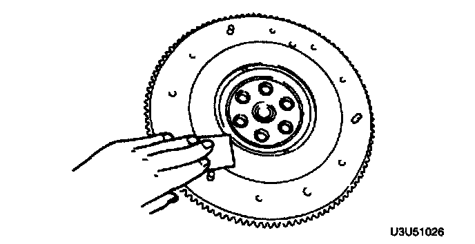 3. Inspect the ring gear teeth for wear and damage. If necessary, replace the flywheel.