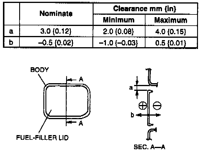 If not as specified, loosen the fuel-filler lid installation bolts and reposition the fuel-filler lid.