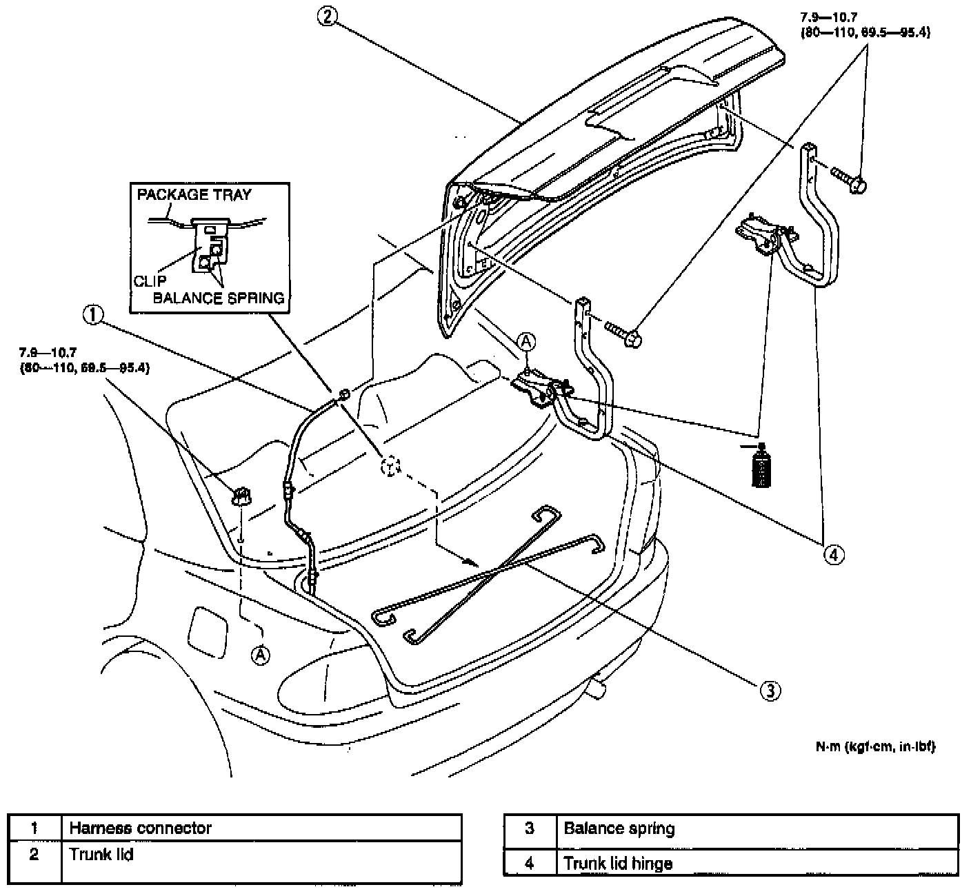 WARNING: Removing the balance spring without removing the trunk lid can be dangerous. The trunk lid may fall and injure you. Remove the trunk lid before removing the balance spring. Perform these procedures together with another person.