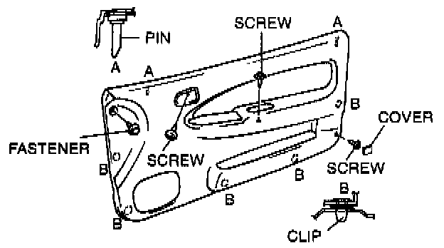 5. Remove the front door trim installation screws and fastener.