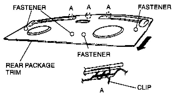 4. Remove the rear package trim installation fasteners.