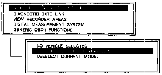3. Select "VEHICLE & ENGINE SELECTION" on the SST (Control Unit) display, and then select the vehicle model, engine type, and model year.