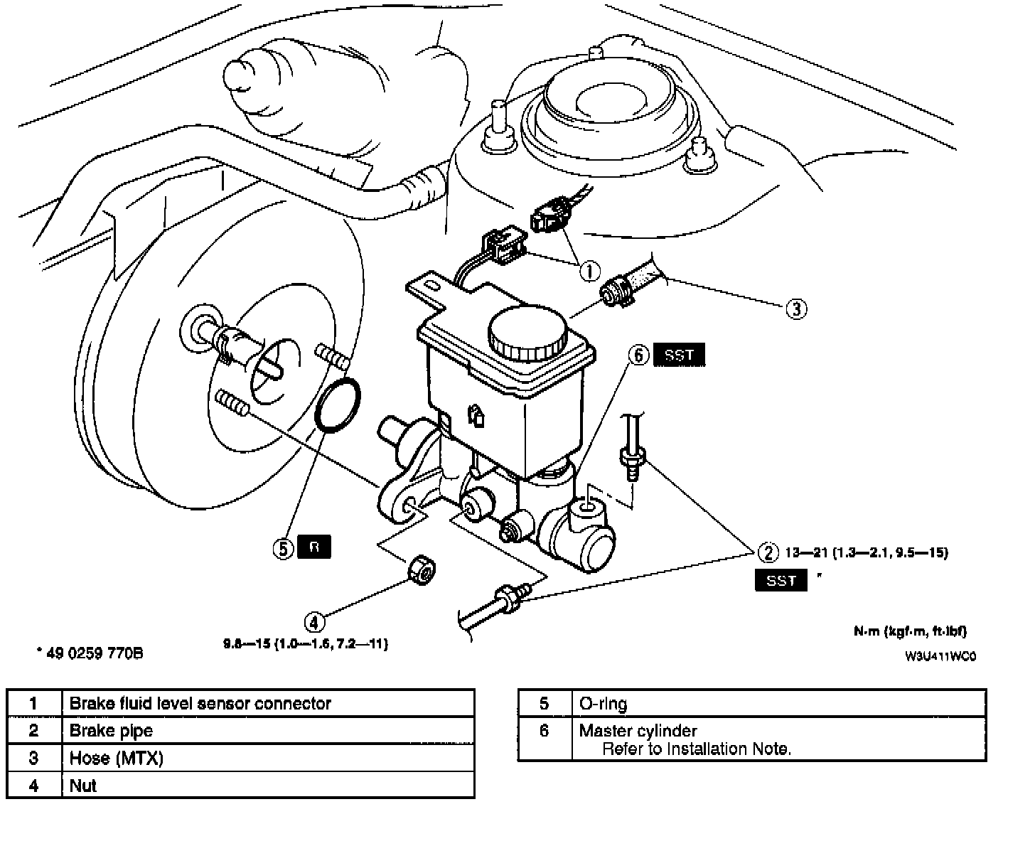 MASTER CYLINDER INSTALLATION NOTE