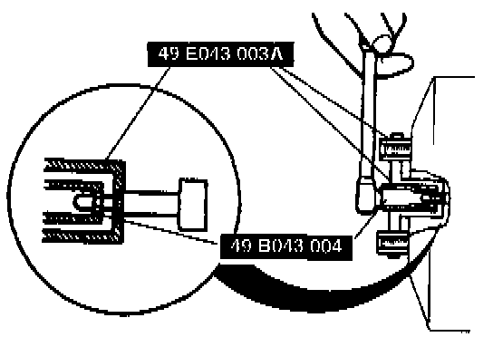 3. Turn the adjusting nut of the SST counterclockwise until the gauge rod just contacts the push rod end of the power brake unit. Push lightly on the end of the gauge rod to be sure it is seated. Verify that there is no gap between the adjusting nut and SST body.