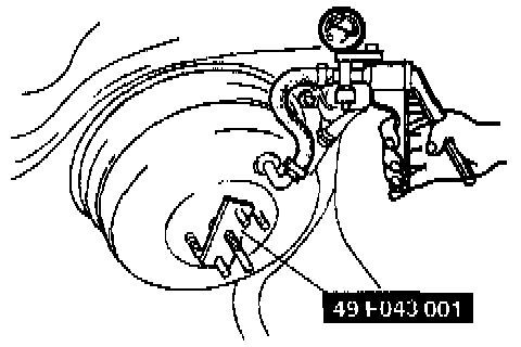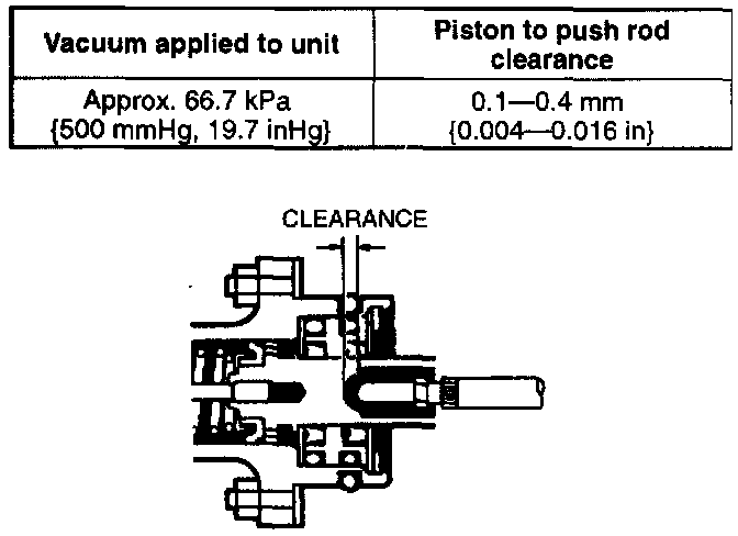 2. Apply 66.7 kPa (500 mmHg, 19.7 inHg) vacuum to the power brake unit with a vacuum pump.