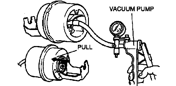 3. Verify that the diaphragm of the cruise actuator is pulled when vacuum of more than 38.7 kPa (290 mmHg,11.4 in.Hg) is applied.