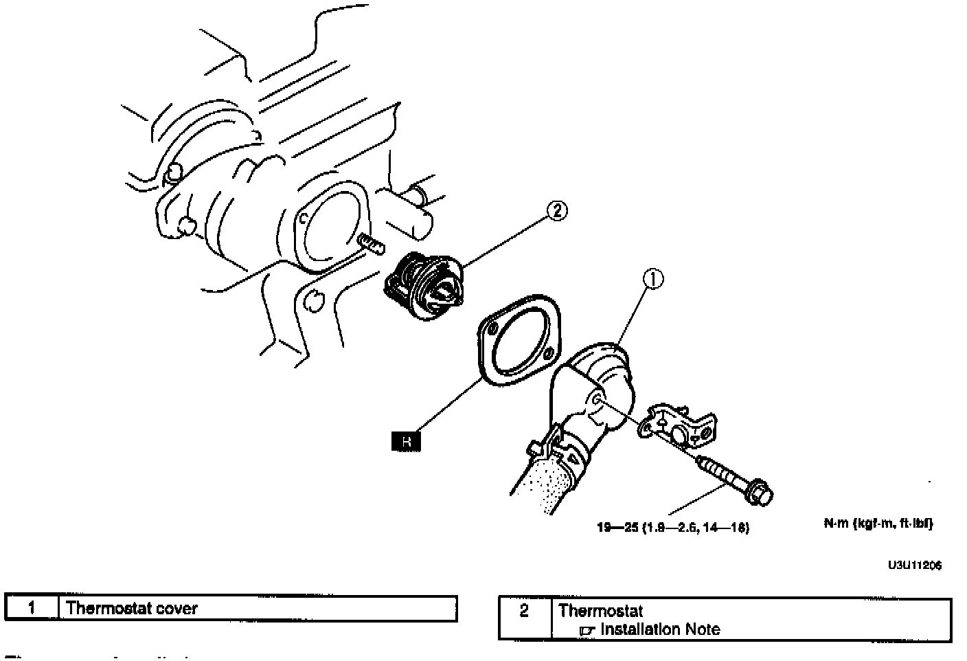 1. Install the thermostat into the cylinder head with the jiggle pin at the top.
