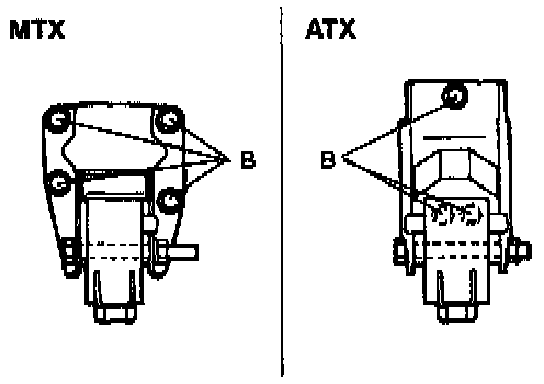 1. Hand tighten No.4 engine mount bracket bolts and nuts B.