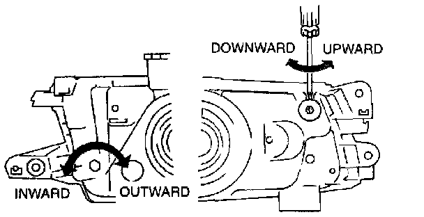 ^ If the adjusting screws are tightened first, then loosened, they may continue to loosen when the vehicle is in motion and cause the headlights to become misaligned.