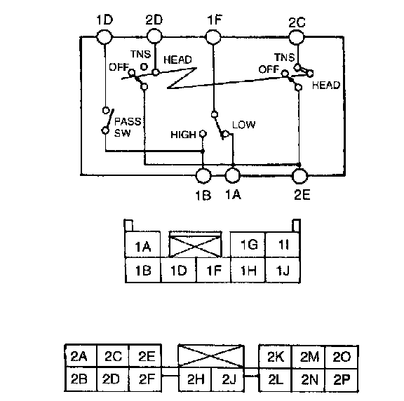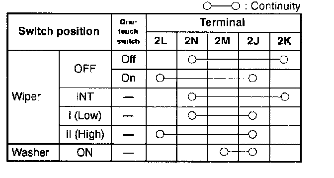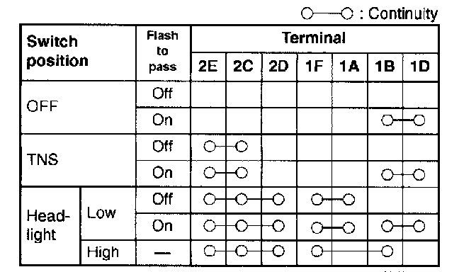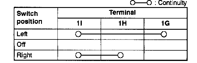 3. Inspect for continuity between the combination switch terminals by using an ohmmeter.