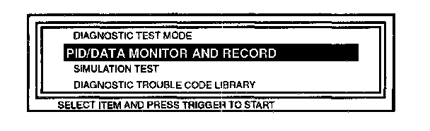 2. Select the "PID/DATA MONITOR AND RECORD" function.