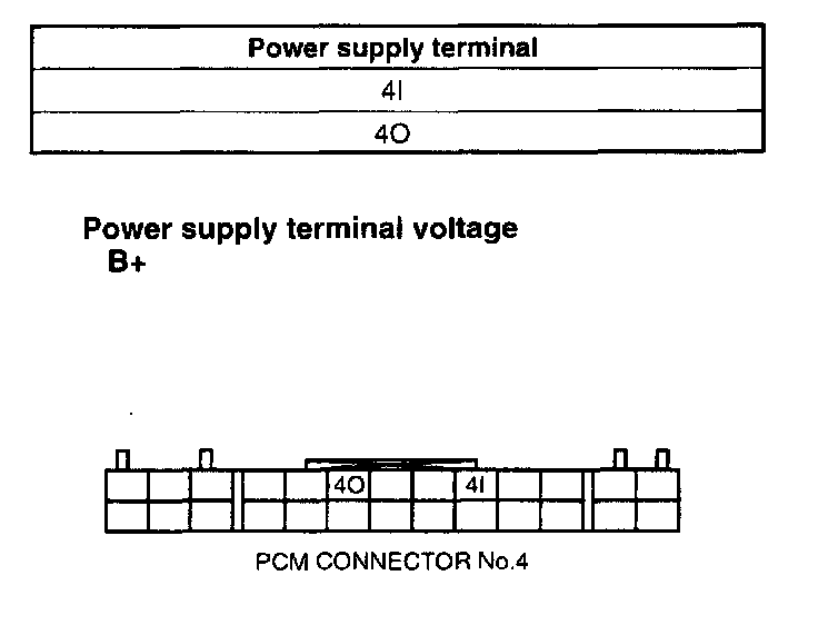 3. Measure the voltage between the PCM battery power supply terminal connectors and body ground by using a voltmeter.