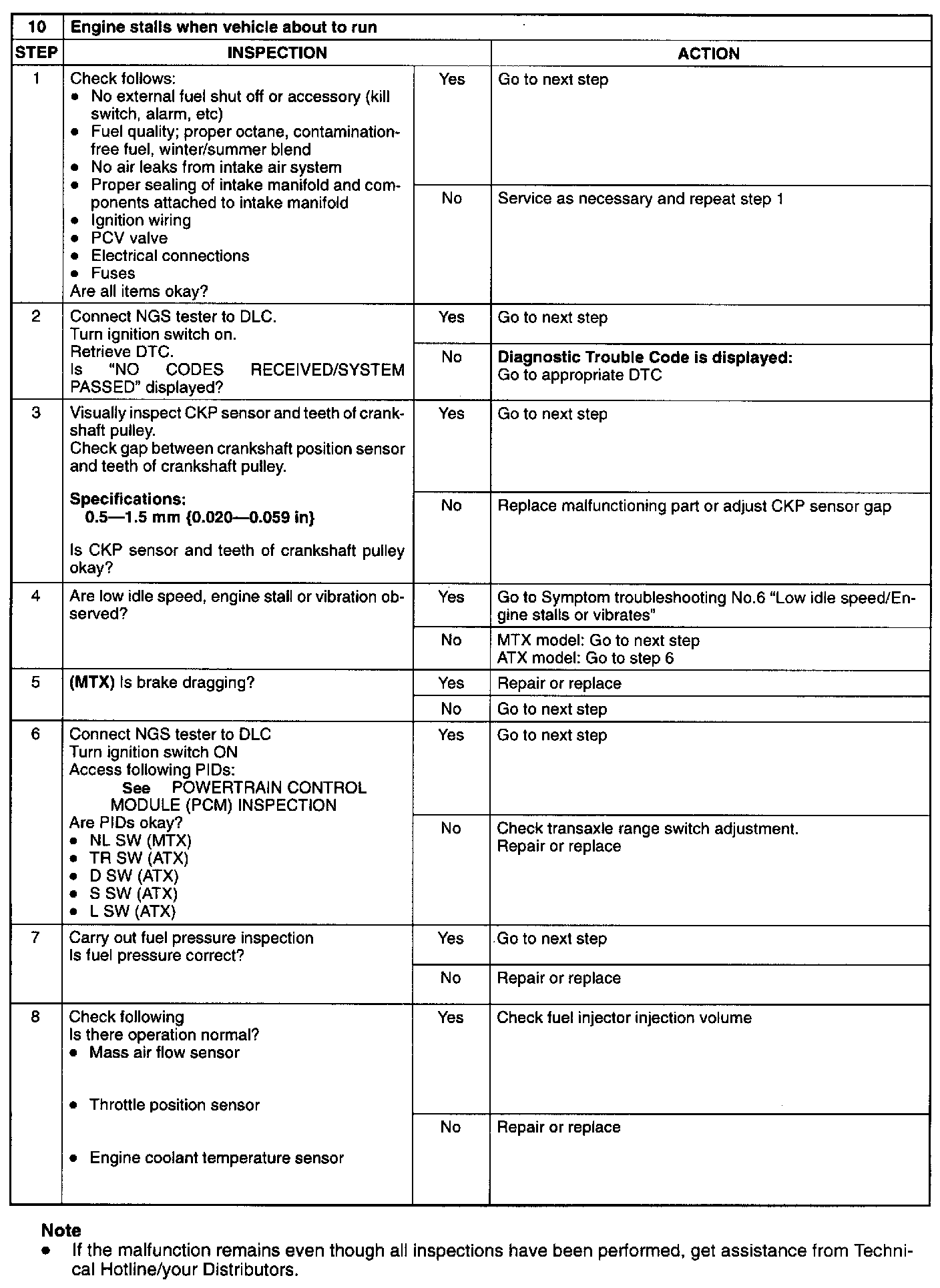 10 Engine Stalls When Vehicle Is About to Run