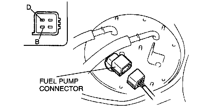 4. Inspect for continuity between fuel pump connector terminals B and D.