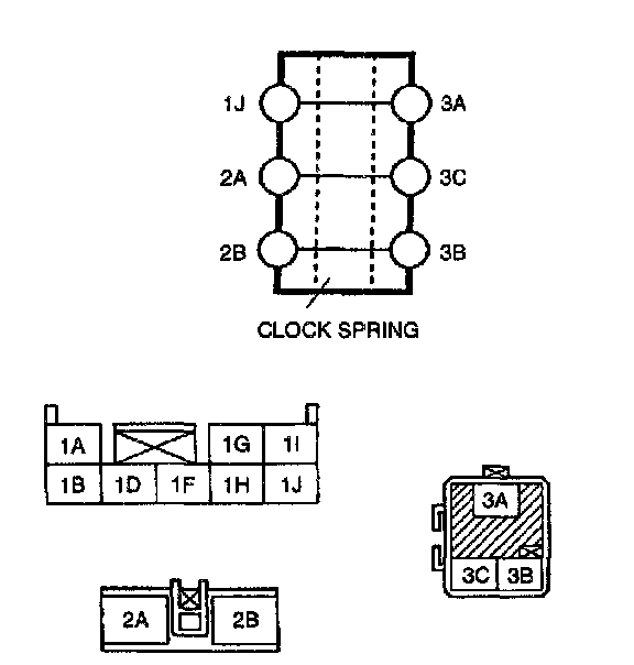 ^ When terminals 2A and 2B are disconnected from the vehicle's main harness, they are shorted to prevent unexpected air bag deployment.