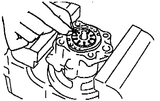 CAUTION: The oil pump may be damaged when it is secured in a vise. Use the Special Service Tool (SST) to prevent damage to the pump when securing it in a vise.