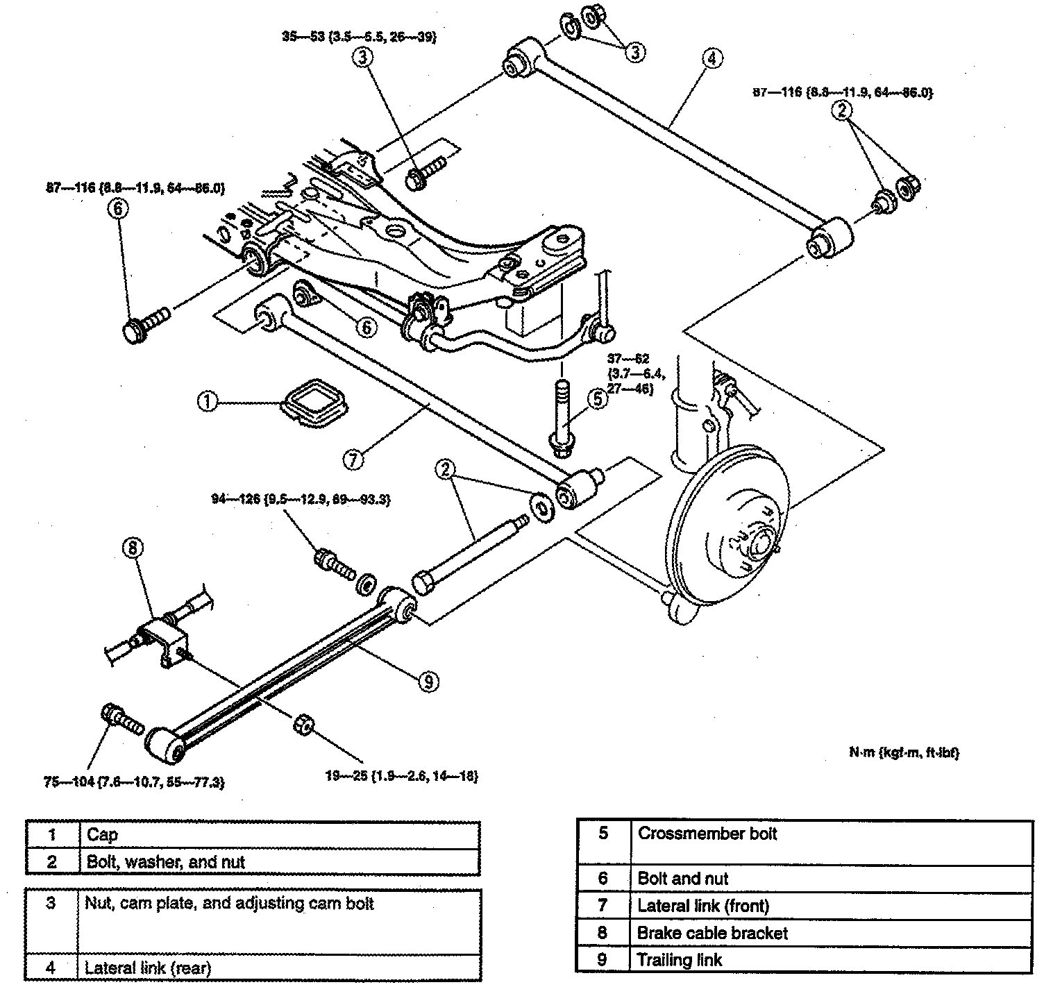 - Before loosening the nut, make a mark on the cam plate and the crossmember for reference during installation.