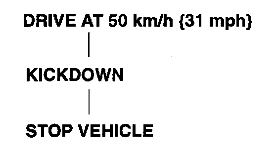 3. Drive the vehicle at 50 km/h (31 mph), and depress the accelerator pedal fully to activate kickdown. Stop the vehicle gradually.