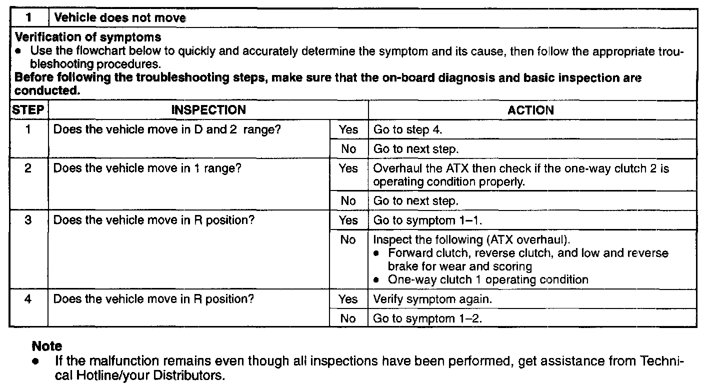 Vehicle Does Not Move in D, 2, or 1 Ranges