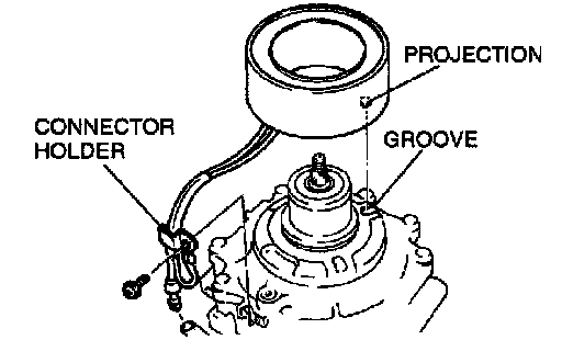 1. Set the projection of the stator to the A/C compressor body groove as shown.
