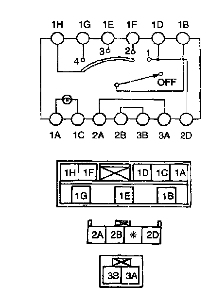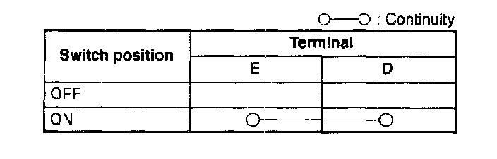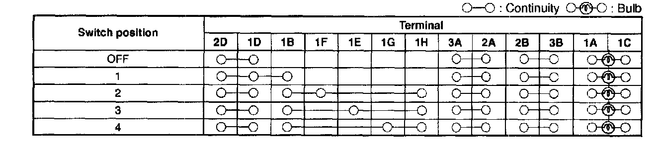 2. Inspect for continuity between the A/C switch terminals by using an ohmmeter.