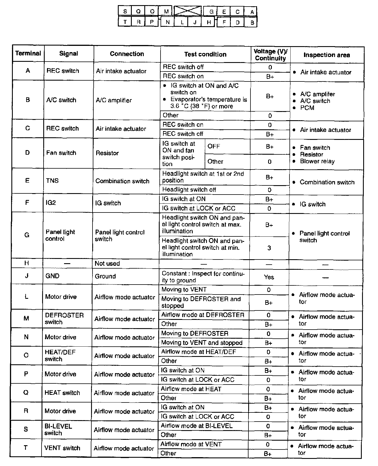 4. To inspect the continuity of terminal J, disconnect the heater control unit connector.