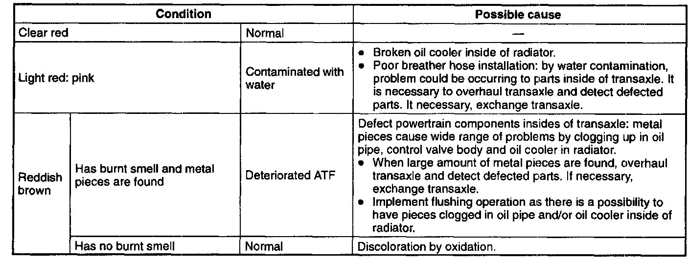 (2) Light pink and/or reddish brown condition. Replace ATF.