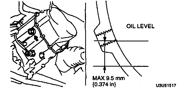 2. Verify that the oil is near the bottom of the plug port within the range shown in the image.
