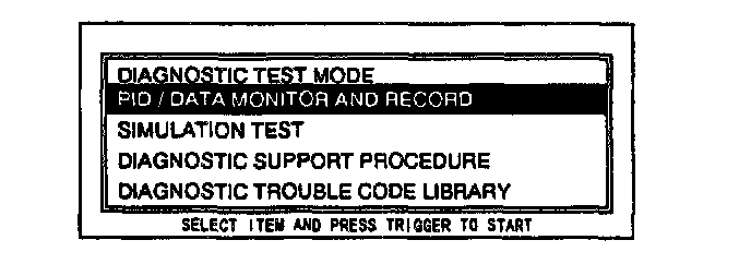 11. Select "PID/DATA MONITOR AND RECORD" and press the TRIGGER.