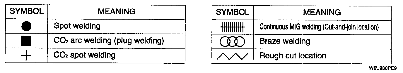 The given 6 symbols are used to indicate the type of weld that is used when replacing body panels.