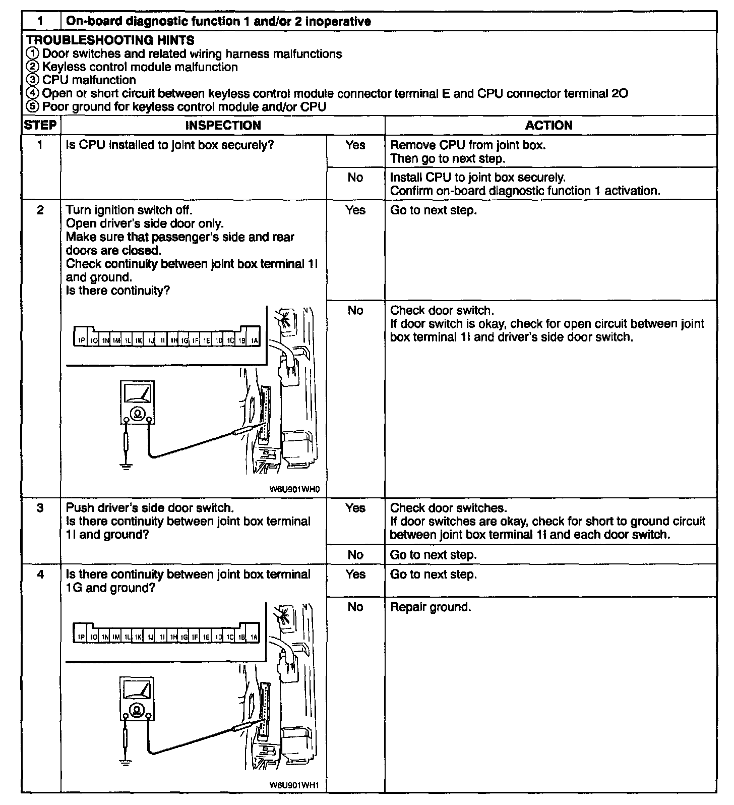 1. On-Board Diagnostic Funtions 1 and/or 2 Inoperative