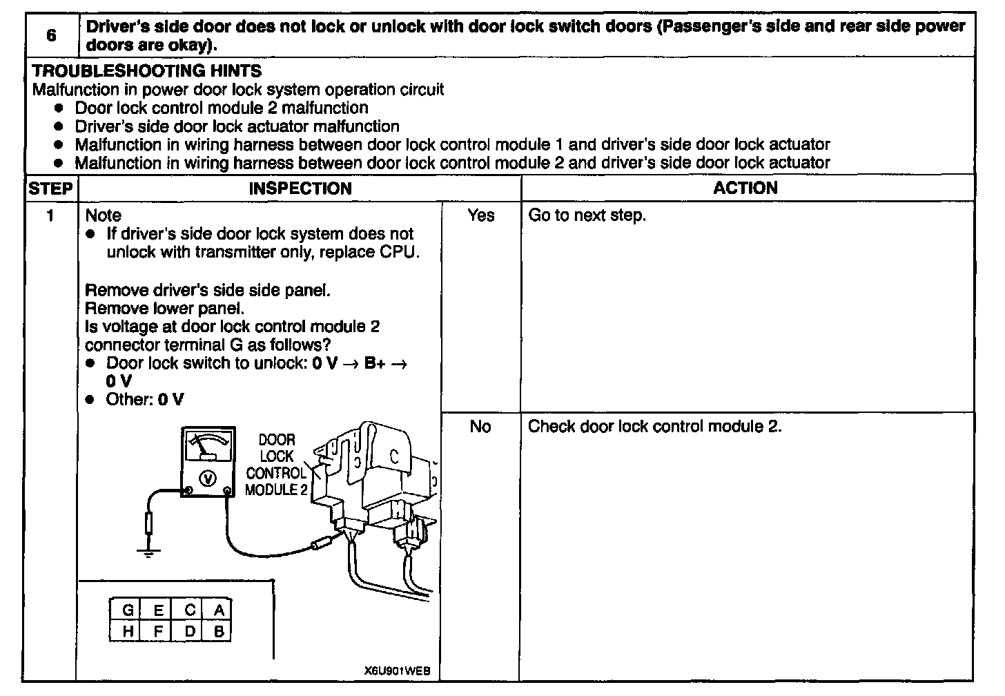 6. Driver's Lock/Unlock INOP With Door Switch, All Others OK