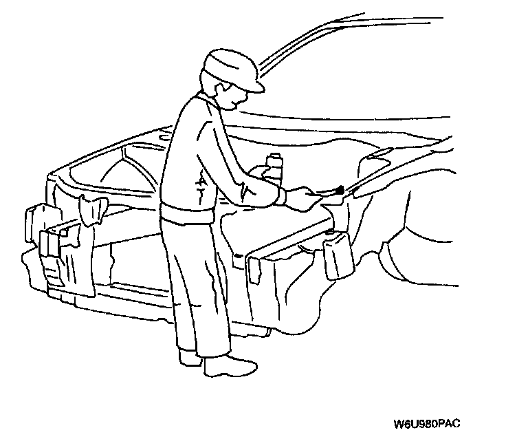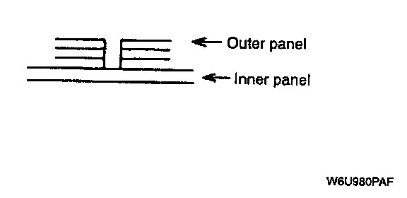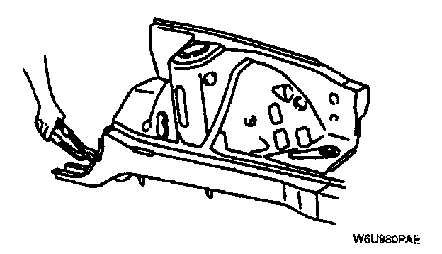 - For treatment against corrosion, remove the paint grease, and other material from the portion of new parts and body to be welded, and apply weld- through primer.