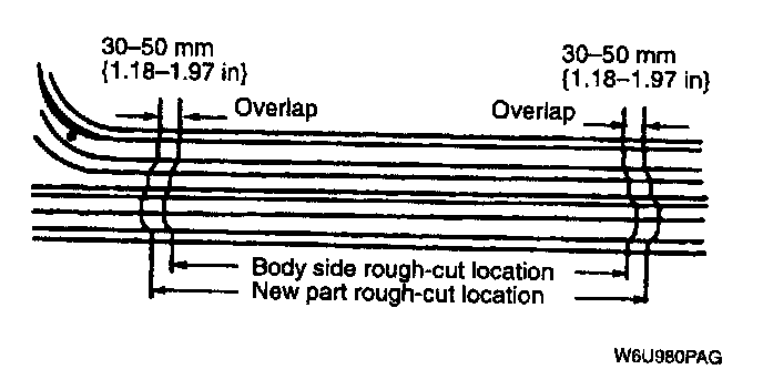 - For cut- and- join area, allow for an overlap of 30 - 50 mm (1.18- 1.97 in) with the remaining area on the body side and then rough- cut the new parts.