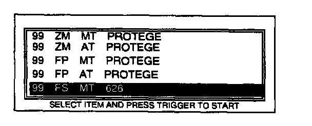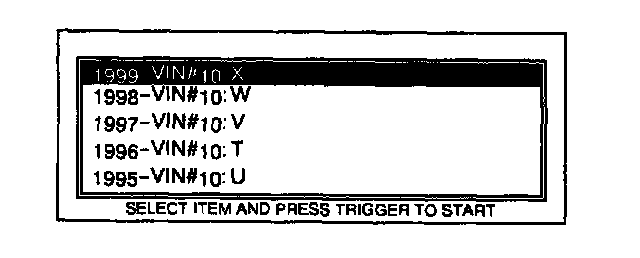 4. Move the cursor to 1999 - VIN #1O:X. Press the trigger key to enter this selection.