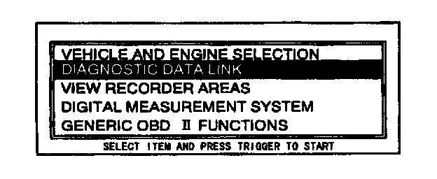 7. Move the cursor to DIAGNOSTIC DATA LINK in the main menu screen. Press the trigger key to enter into menu system diagnostics.