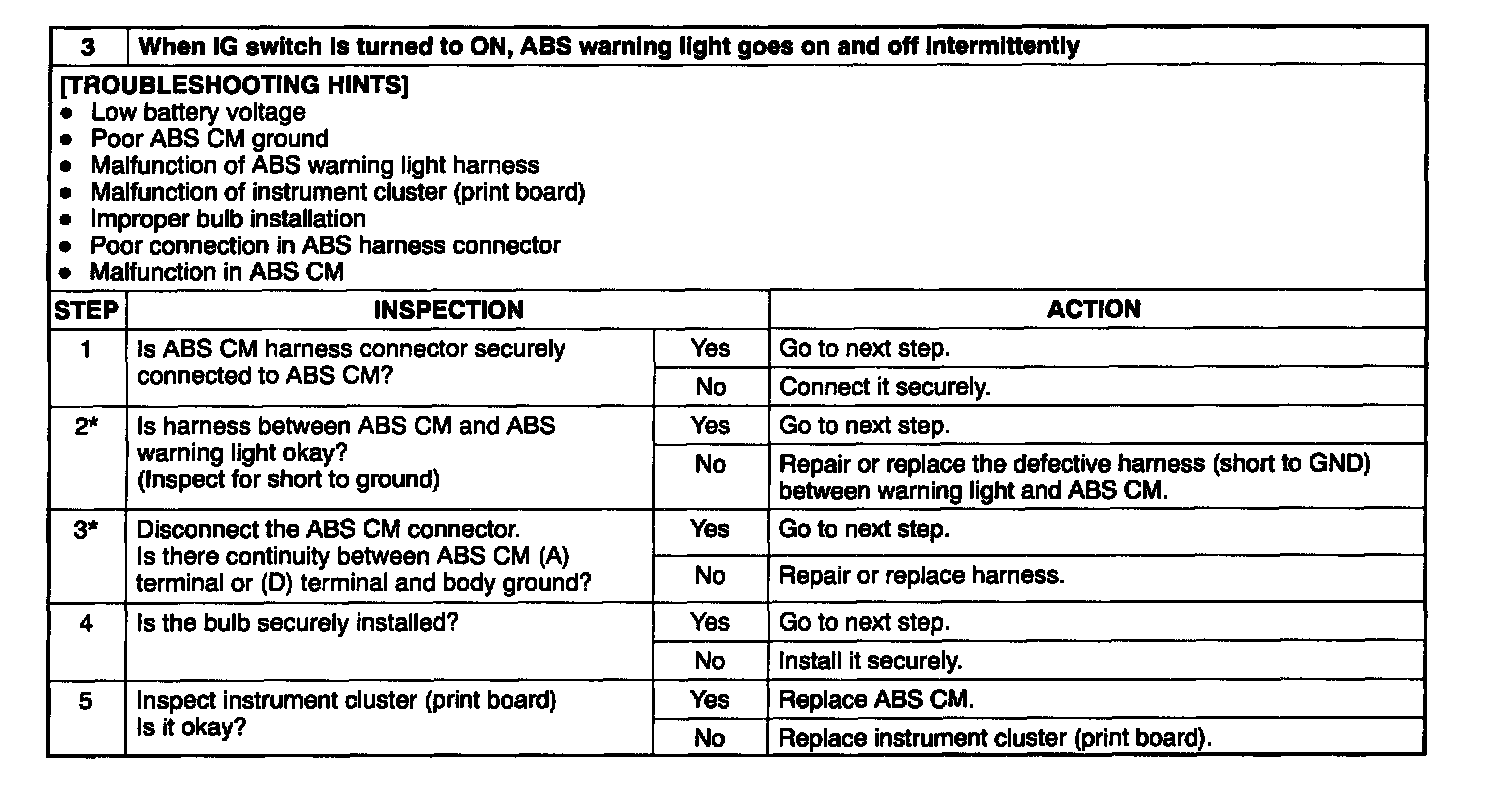 3. IG Switch Turned ON, ABS Light Goes On/Off Intermittently