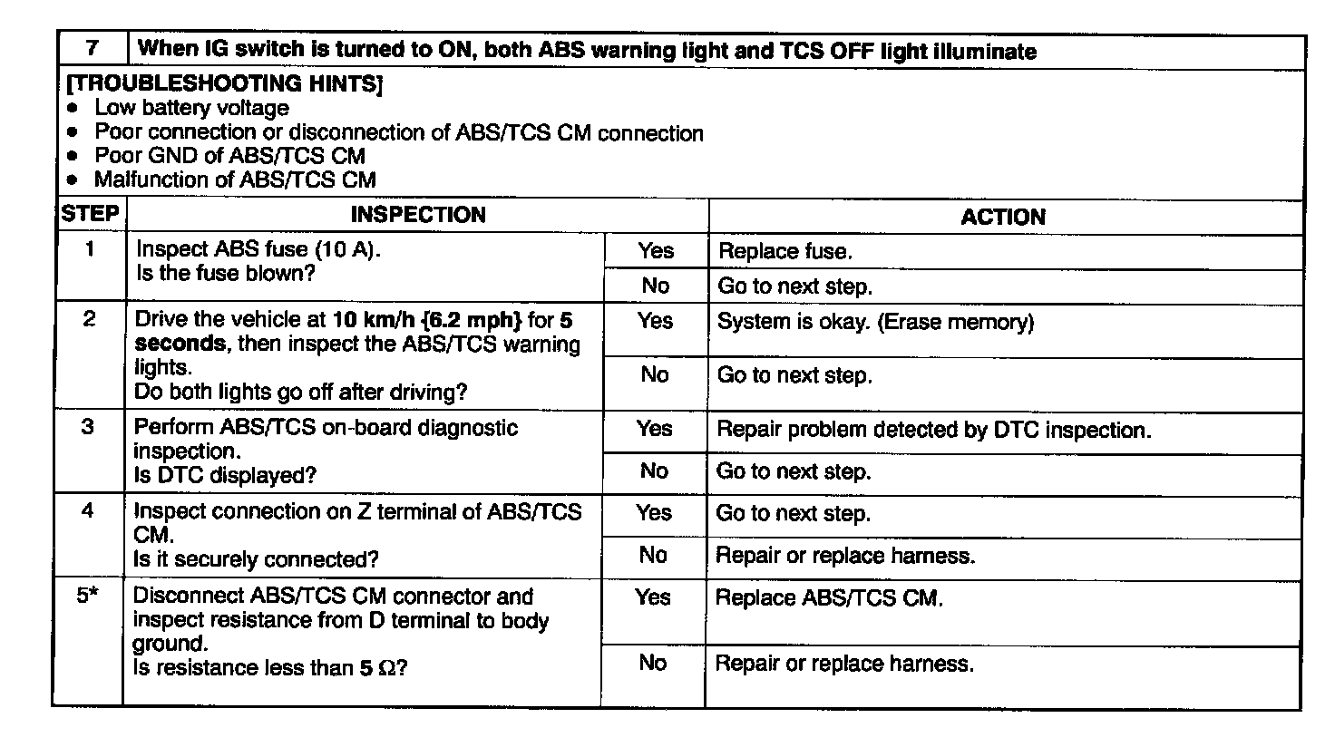 7. When IG Switch Is Turned to ON, Both ABS/TCS OFF Light On