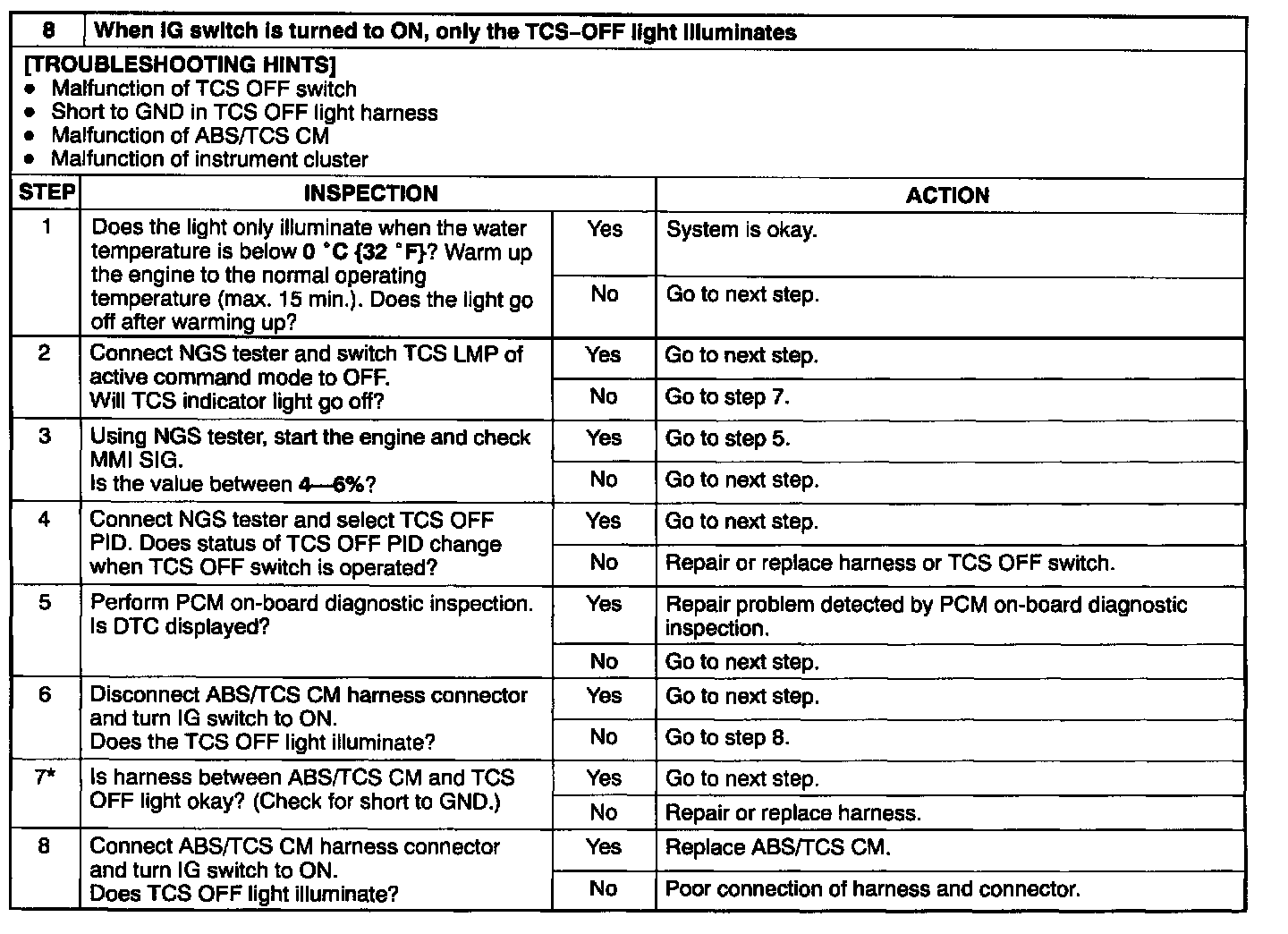 8. When IG Switch Is Turned to ON, Only The TCS-OFF Light On