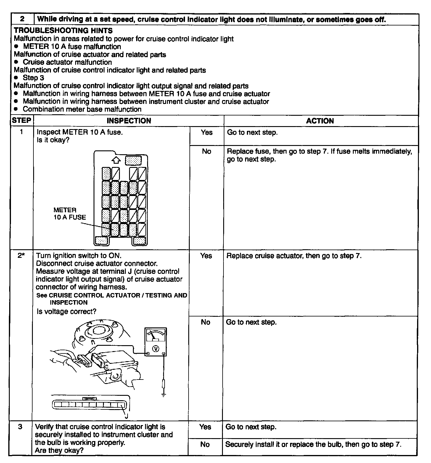 2. At Set Speed, Cruise Control Indicator Light Inoperative