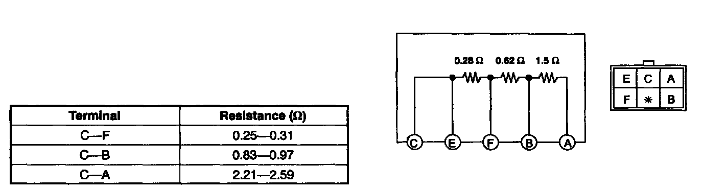 4. Verify that the resistance between the terminals of the resistor is as shown in the table.