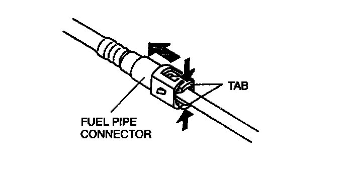 2. Squeeze the tabs of the retainer and disconnect the fuel pipe connector.