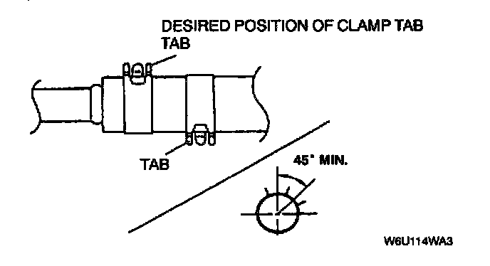 4. When installing two clamps, their tabs must be positioned more than 45° (desired 180°) apart.
