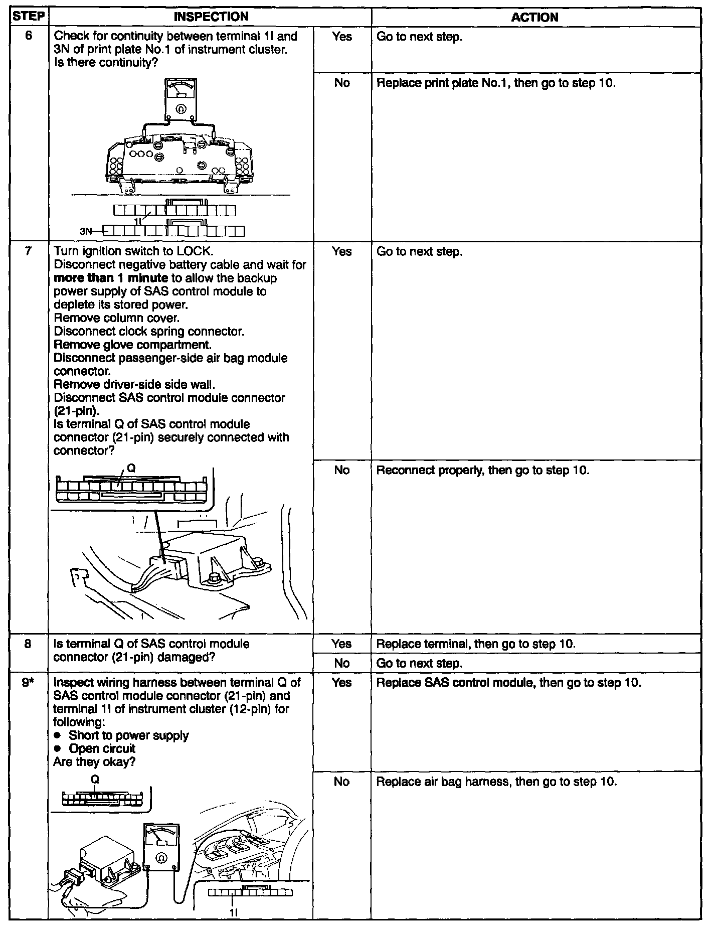 Air bag system warning light does not illuminate when ignition switch is turned ON.