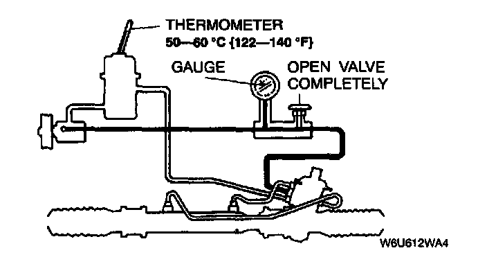 4. Open the gauge valve fully. Start the engine and turn the steering wheel fully left and right to raise the fluid temperature to 50 - 60°C {122 - 140°F}.