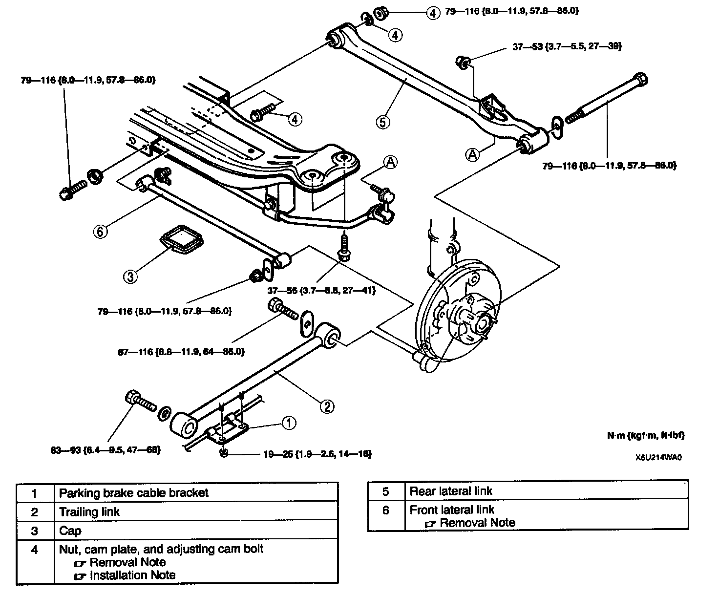 LATERAL LINK AND TRAILING LINK REMOVAL/INSTALLATION1. Remove in the order indicated in the table.